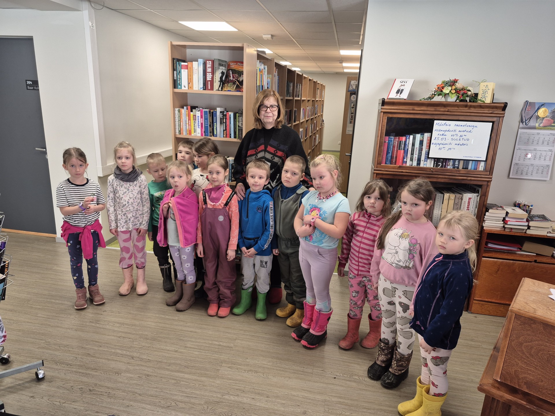 Märtsikuu on lasteaias emakeele ja teatrikuu ning kevade alguse tähistamise kuu. Traditsiooniks on kujunenud vanemate lastega õppekäik Haiba raamatukokku, kus raamatukoguhoidja Eha tutvustas ja luges lastele lugusid lasteraamatust. Lastel oli võimalus ise endale põnevat lugemist valida ja ühtlasi said selgeks raamatukogus käitumise reeglid. Männiriisika lapsed joonistasid emakeelepäevaks õpitud luuletuste teemalised pildid, mis jäid raamatukogusse näitusele, et ka teised külastajad saaksid neid vaadata. Raamatukogu külastuse kõige toredam hetk laste jaoks on bussisõit tagasi lasteaeda, sest enamasti sõidetakse peredes ikka autoga.