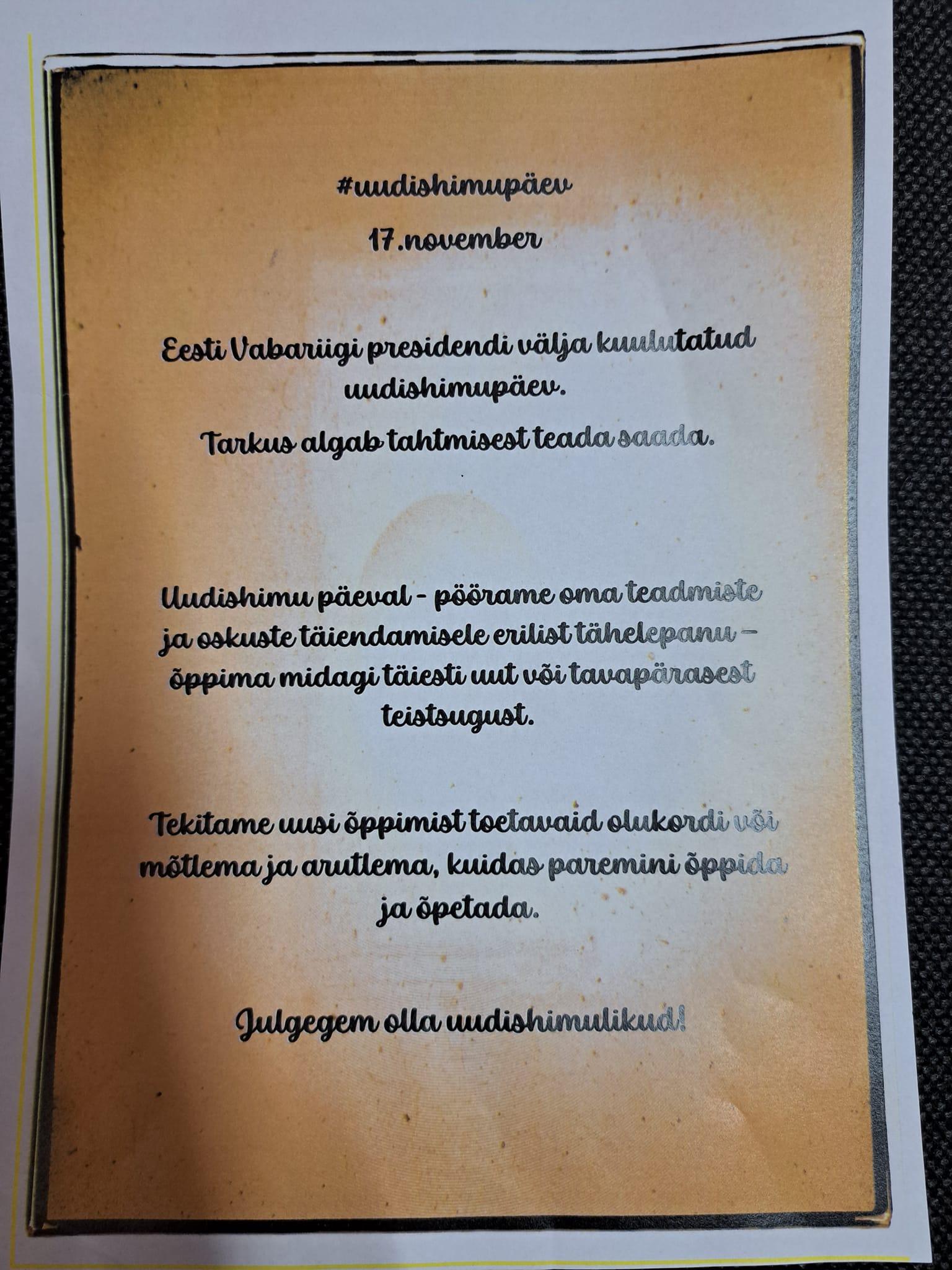 Eesti Vabariigi presidendi välja kuulutatud uudishimupäev. Julgegem olla uudishimulikud!