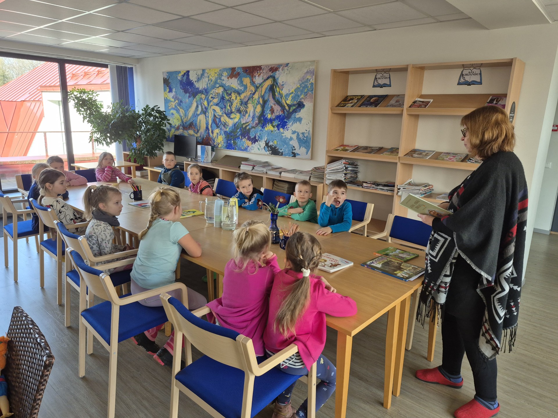 Märtsikuu on lasteaias emakeele ja teatrikuu ning kevade alguse tähistamise kuu. Traditsiooniks on kujunenud vanemate lastega õppekäik Haiba raamatukokku, kus raamatukoguhoidja Eha tutvustas ja luges lastele lugusid lasteraamatust. Lastel oli võimalus ise endale põnevat lugemist valida ja ühtlasi said selgeks raamatukogus käitumise reeglid. Männiriisika lapsed joonistasid emakeelepäevaks õpitud luuletuste teemalised pildid, mis jäid raamatukogusse näitusele, et ka teised külastajad saaksid neid vaadata. Raamatukogu külastuse kõige toredam hetk laste jaoks on bussisõit tagasi lasteaeda, sest enamasti sõidetakse peredes ikka autoga.
