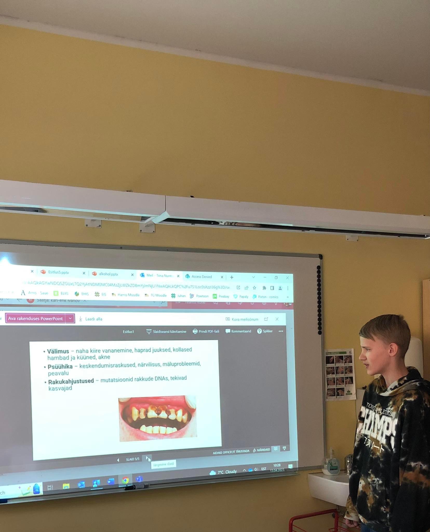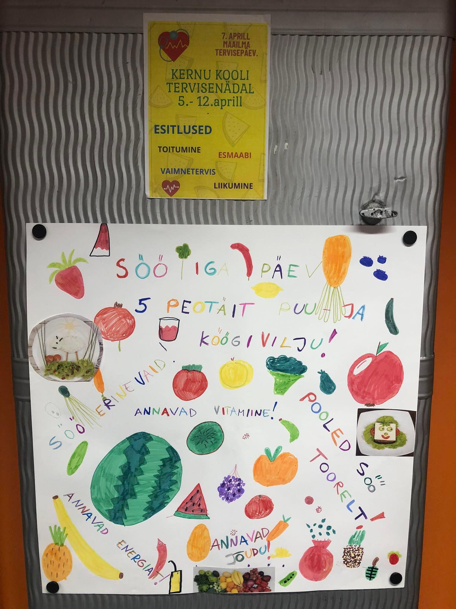 Seoses 7.aprillil toimunud rahvusvahelise tervisepäevaga toimus meie koolis tervisenädal. Õpilased tegid erinevad uurimusi ja esitlusi. Esitati näidend liikumise kasulikkuse kohta, koostati plakat puu-ja köögiviljade teemal, räägiti milline mõju on alkoholil, sigarettidel ning narkootikumidel tervisele.