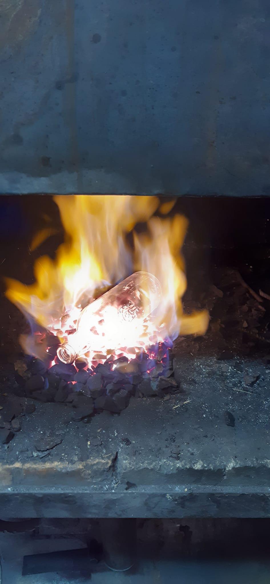 Töö -ja tehnoloogiatunnis põletati pudelit.