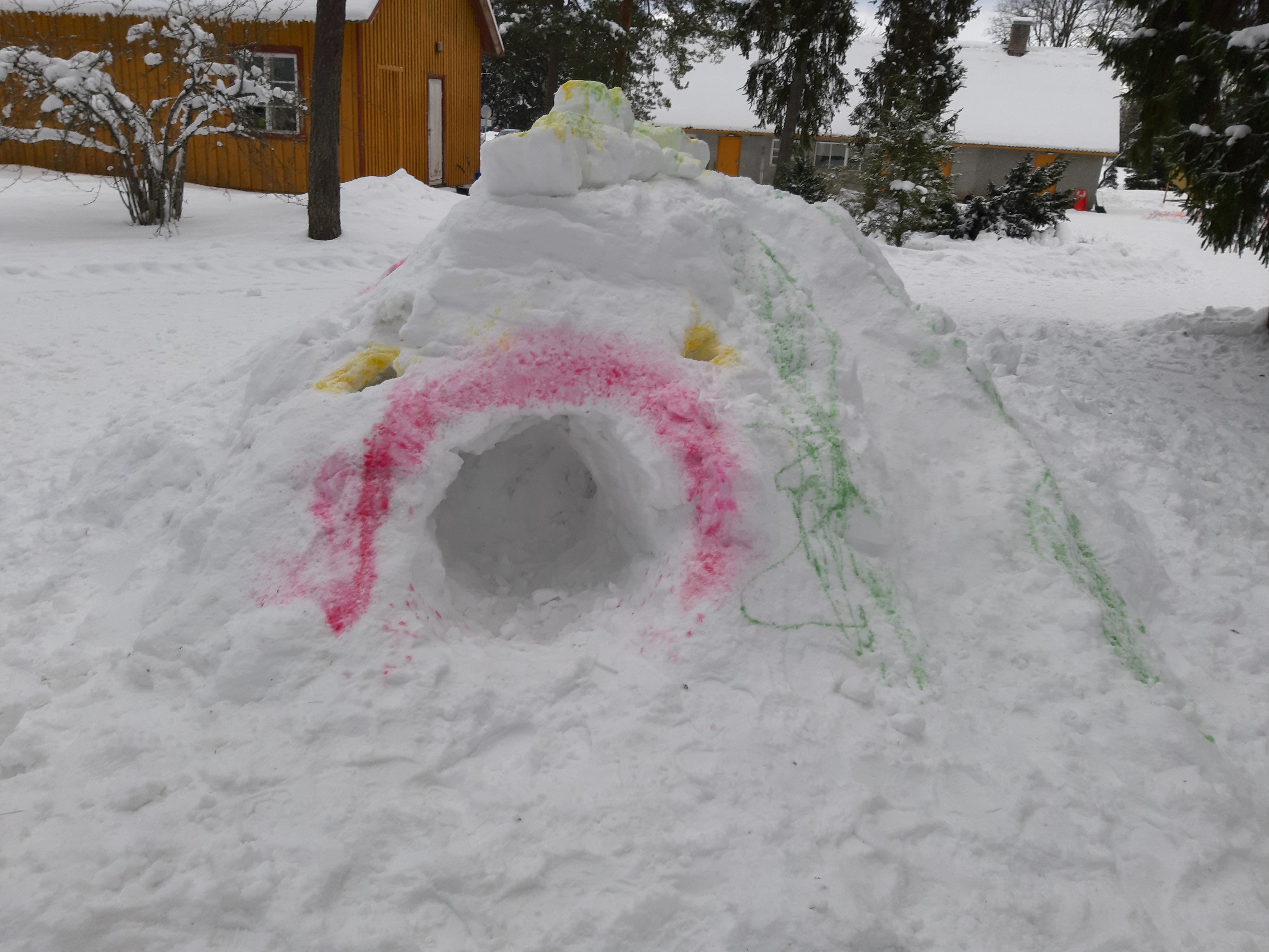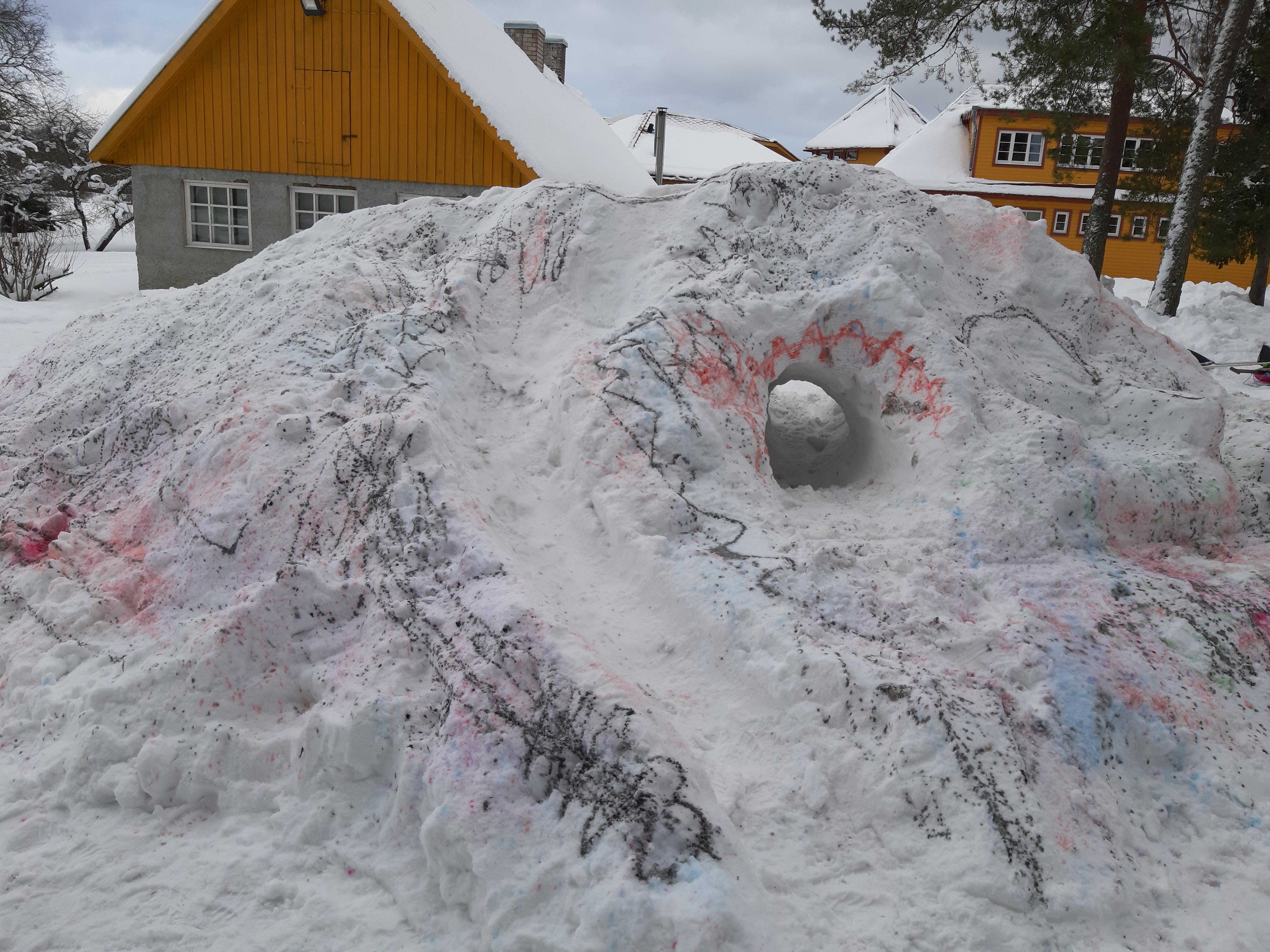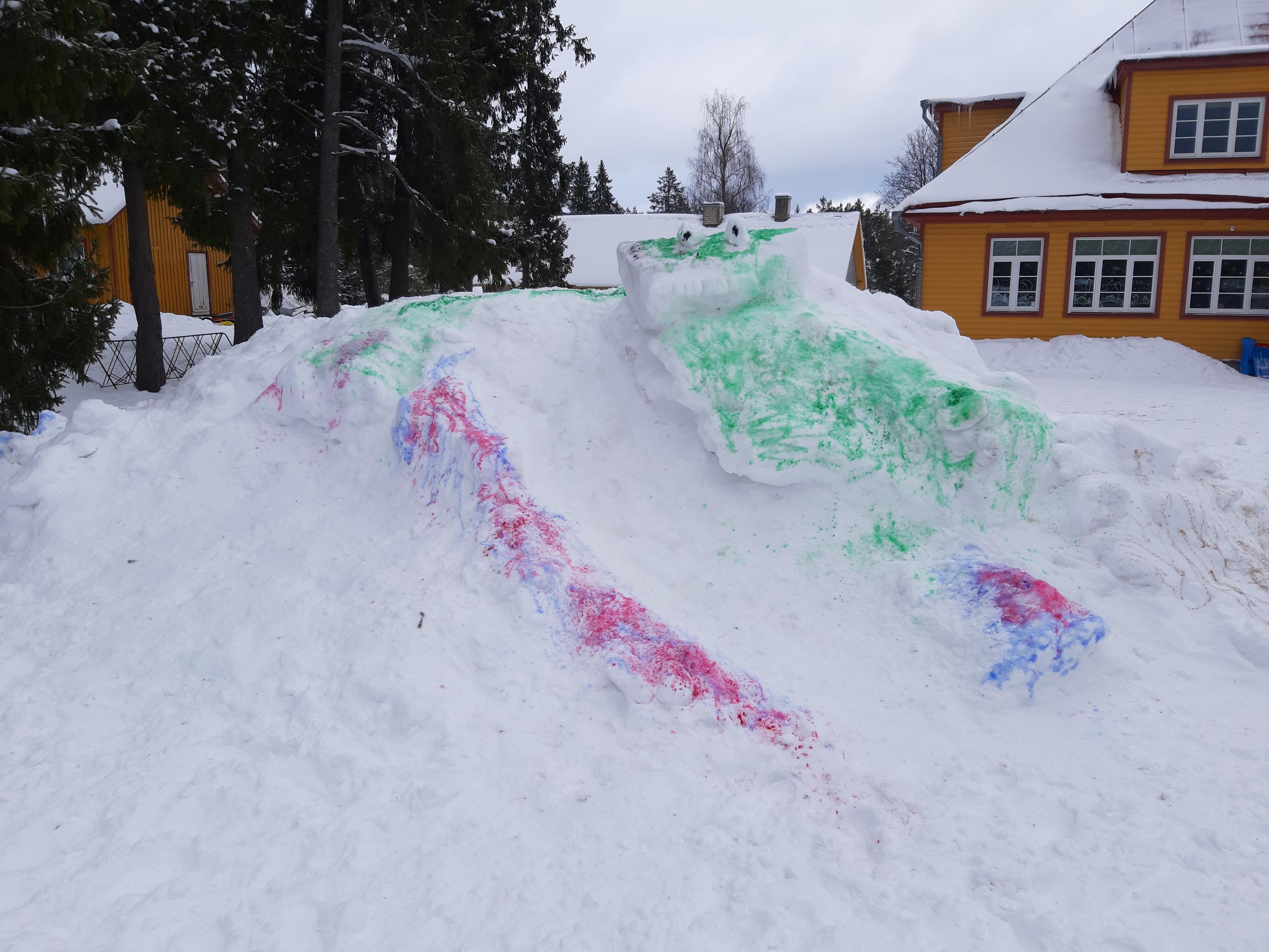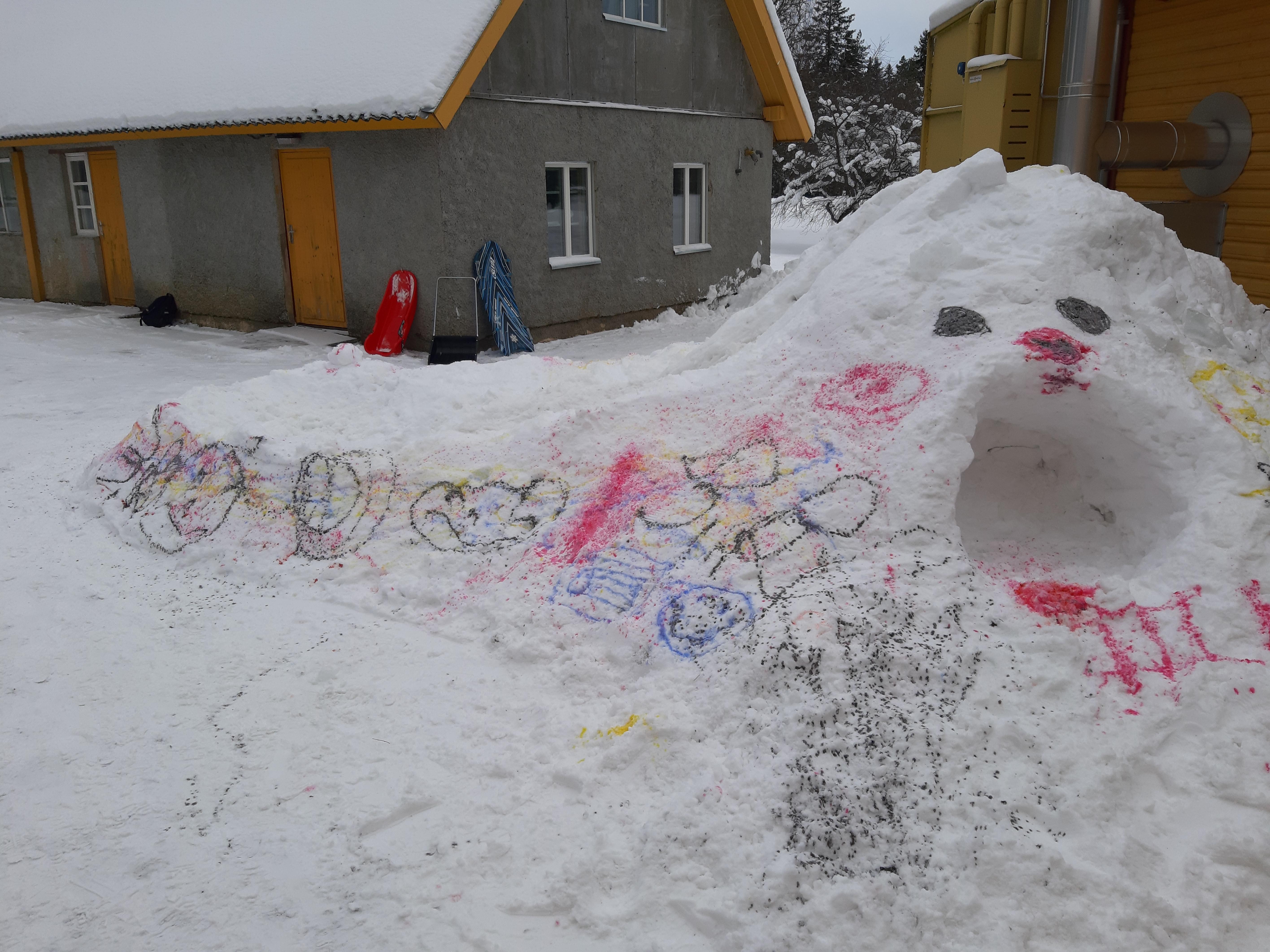 Täna said Kernu kooli õpilased,pärast hernesupi ning kuklit söömist, oma loovusele vaba voli anda. Kooli juurde valmisid uhked lumeskulptuurid.
